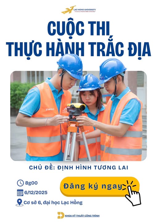 Nhằm tạo sân chơi học thuật chuyên sâu, giúp sinh viên rèn luyện kỹ năng thực hành đo đạc – xử lý số liệu thực địa và phát huy tinh thần đồng đội, Khoa Kỹ thuật Công trình trân trọng tổ chức Cuộc thi Trắc địa năm 2025 với chủ đề "Định hình tương lai".