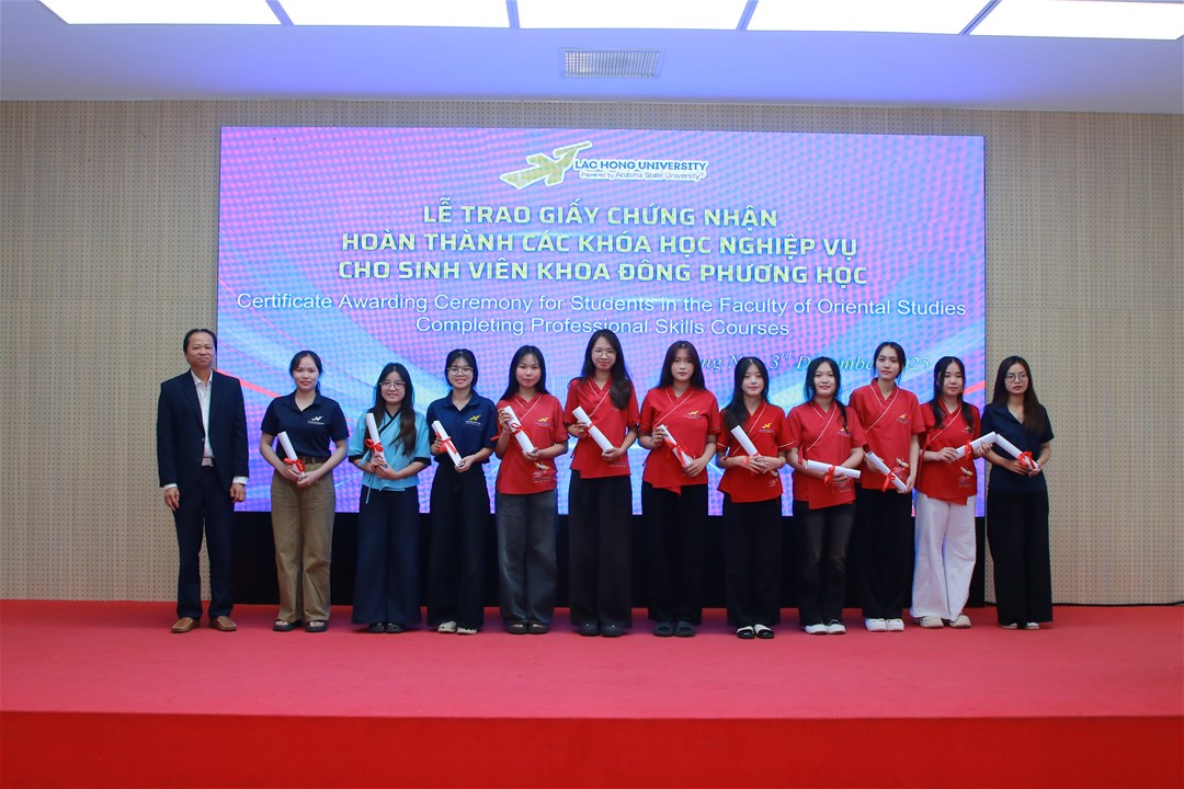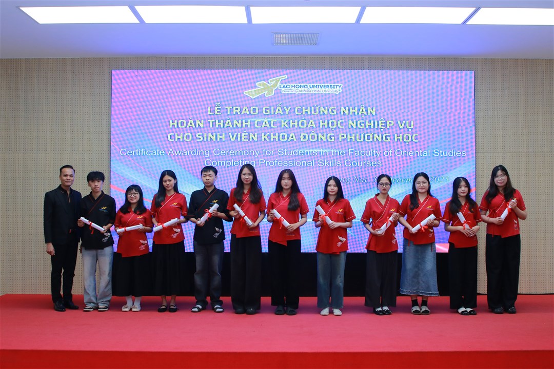 Hơn 93 sinh viên đã hoàn thành xuất sắc và nhận bằng chứng nhận nghiệp vụ trong Lễ Trao giấy chứng nhận hoàn thành các khóa học nghiệp vụ cho sinh viên Khoa Đông phương học vào ngày 03/12/2025 – sở hữu những kỹ năng “vàng” giúp sinh viên tự tin ghi dấu ấn ngay từ khi học tập và cho đến khi ra trường làm việc tại doanh nghiệp.