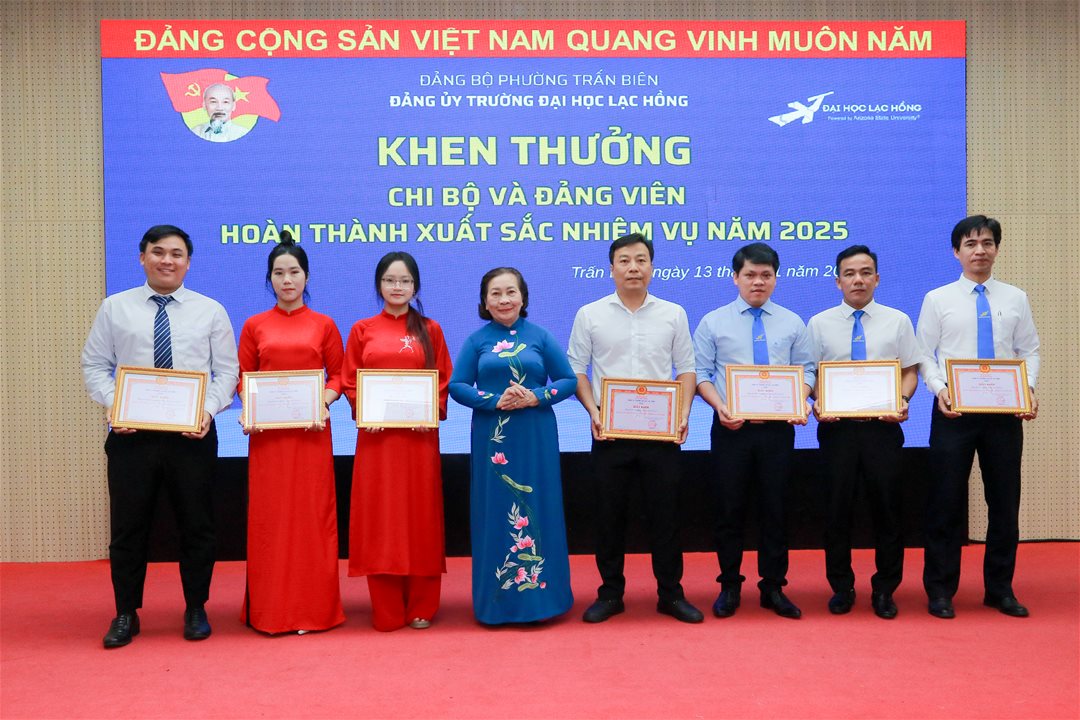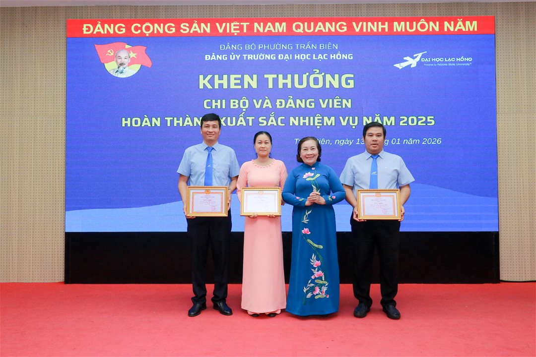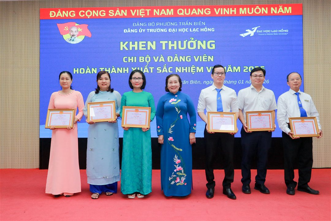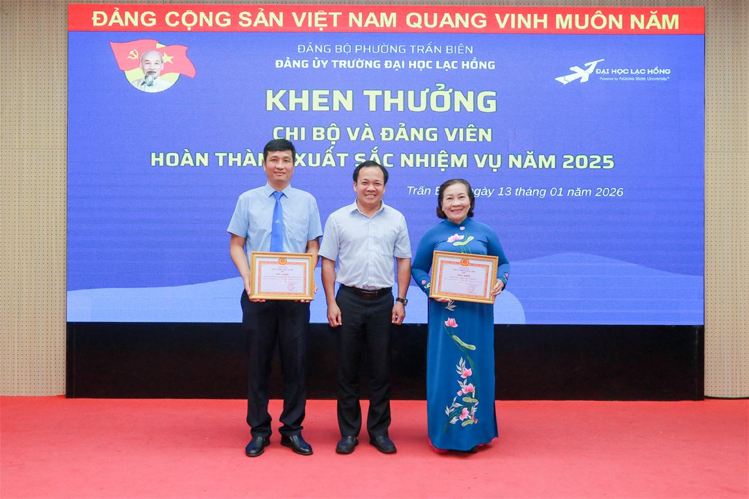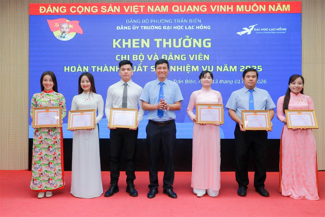 Sáng ngày 13 tháng 01 năm 2026 tại Hội trường A301, Trường Đại học Lạc Hồng, Đảng ủy trường đã tổ chức Khen thưởng Chi bộ và Đảng viên Hoàn thành xuất sắc nhiệm vụ năm 2025.
