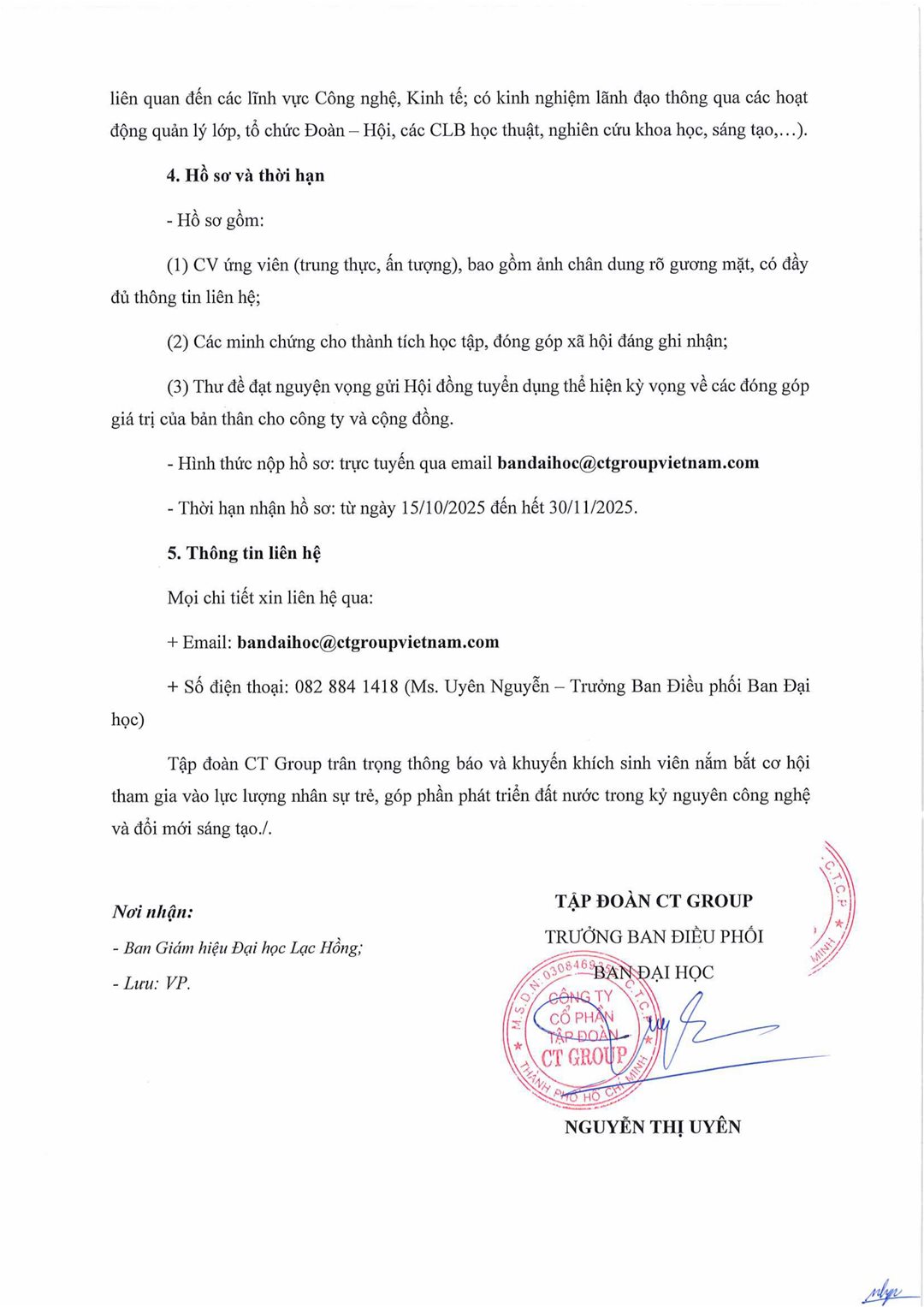 Thông báo tuyển dụng lần thứ 36, năm học 2025 - 2026. Tập đoàn CT Group