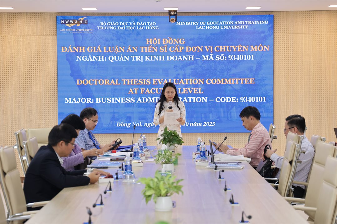 Vào ngày 10/10/2025, tại phòng họp Cơ sở 1 của Trường Đại học Lạc Hồng, Khoa Sau đại học đã tổ chức Hội đồng đánh giá luận án tiến sĩ cấp đơn vị chuyên môn ngành Quản trị Kinh doanh cho nghiên cứu sinh Đỗ Thế Thắng.