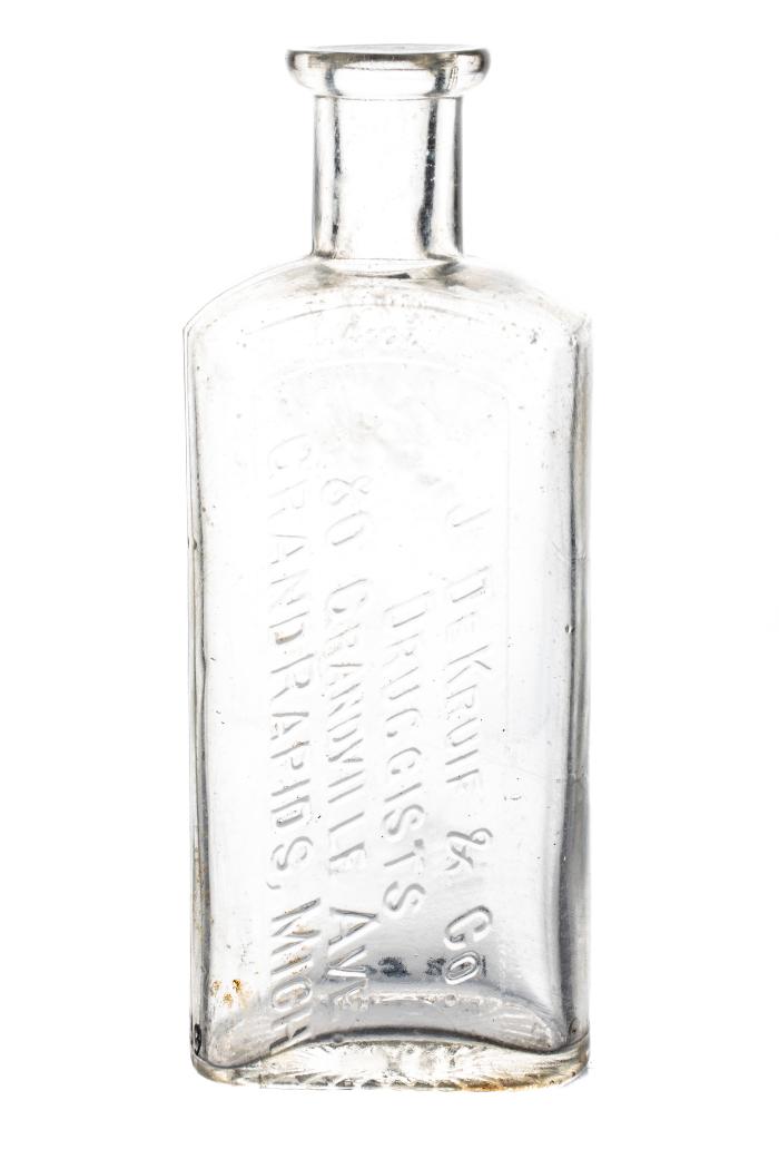 Lọ thuốc, dòng chữ ghi: "J. DeKruif & Co. Druggists, 80 Grandville Ave., Grand Rapids, Mich.".
