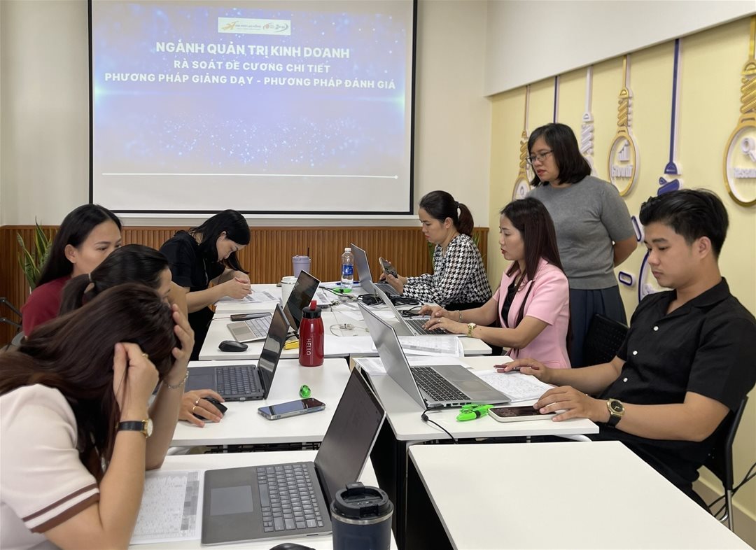 PhD candidate Ta Thi Thanh Huong – Vice Dean of FAIE – directly discussed and provided specific guidance on standardizing syllabi. She emphasized the importance of updating course content to keep pace with modern business practices and requested lecturers to review the alignment between detailed content and the Learning Outcomes matrix of the Business Administration program.