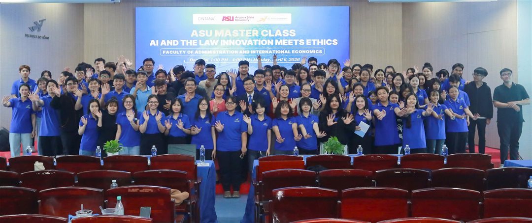 On the afternoon of April 6, 2026, the Faculty of Administration – International Economic, Lac Hong University, organized the ASU Master Class: Innovation Meets Ethics for students majoring in Law and Economic Law. The program was implemented within the framework of academic cooperation, aiming to equip students with foundational knowledge and a mindset to approach legal issues in the context of digital transformation.