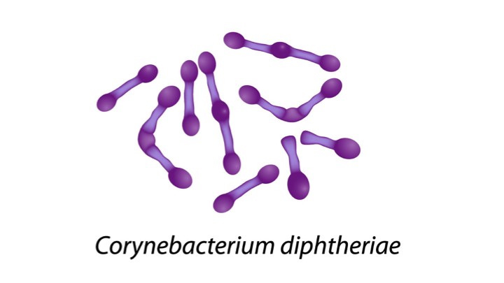Diphtheria is an infectious and toxigenic disease, transmitted via the respiratory route and capable of causing outbreaks, caused by Corynebacterium diphtheriae. It commonly affects children under 15 years of age and individuals lacking immunity because they have not been fully vaccinated. The organism typically colonizes and damages the upper respiratory tract (nose, pharynx, and larynx), producing an adherent pseudomembrane that is difficult to remove, and releases exotoxin causing systemic toxicity involving the heart, kidneys, and nervous system. The disease carries a high risk of death due to airway obstruction and myocarditis. Specific treatment includes antibiotics and diphtheria antitoxin (DAT), and prevention is possible through vaccination.