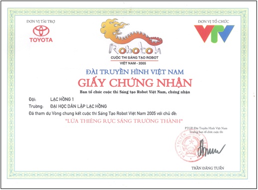 Đội đã thi đấu xuất sắc tại vòng loại khu vực phía Nam và lọt vào chung kết cuộc thi Sáng Tạo Robot Việt Nam 2005 với chủ đề "Lửa Thiêng Rực Sáng Trường Thành". Đội tuyển đã vinh dự được công nhận là điển hình tiên tiến trong phong trào thi đua yêu nước tỉnh Đồng Nai lần 3 – 2005. |